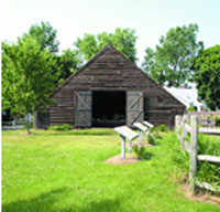 The main feature of the museum is the barn building. It was made completely of local wood, down to the nails called trunnels. Massive anchor beams, supported by posts creating an H-frame, support the entire structure. They tended to be wider than long with very steep, sloping roofs that allowed for the large storage area. These barns were built to store diversified crops with the side bays used for keeping a variety of animals and the hay stored above in very large, roomy haylofts. The large entrances on both gable ends allowed for the efficient unloading of the wagons. Because the floors were raised off the ground on a sill, the wood plank floors could last for decades.