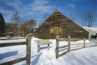The main feature of the museum is the barn building, an outstanding example of the vernacular architecture referred to as a "New World Dutch Barn." Wherever the Dutch settled along the Hackensack, Passaic, Raritan and Millstone Rivers and their tributaries, the heavy timber frames of these three-bayed, door-in-the-gable-end barns were raised. Other locations were along the Hudson and Mohawk Rivers, and Schoharie Creek in New York State.