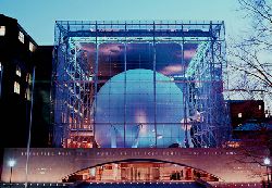 The dazzling centerpiece of the Rose Center for Earth and Space, which is transforming the entire north side of the Museum on West 81st Street, is an 87-foot sphere that appears, from the outside, to float within a 95-foot-high glass-walled cube. This magnificent structure is certain to become a celebrated architectural icon of the New York skyline.