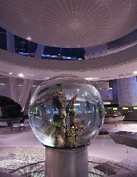 The Great Sphere houses the new Hayden Planetarium. The top half contains a Space Theater, where cutting-edge visualization tools bring audiences spectacular, three-dimensional astronomical imagery that is both breathtaking and scientifically accurate. The level of technology and scientific content used to present the virtual universe has never been available to the public before. With its high-definition system, the totally rebuilt and rejuvenated Hayden Planetarium is the largest and most powerful virtual reality simulator in the world.