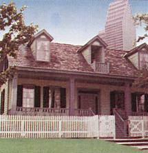 San Felipe Cottage -- This simple six room house was built at the southwestern edge of Houston on the old San Felipe Road. It has been restored as a typical Texas cottage of the 1870's. The house was added to the park in 1972.