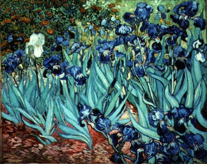 The paintings collection includes European works of art in oil, tempera and pastel from the 13th century to the end of the 19th century. Public imagination has been especially captured by the French Impressionists, including the famous 'Irises ' by Van Gogh. The collection also includes significant works by Masaccio, Rubens, Titian, Veronese, Rembrandt, and other great masters. Among Mr. Getty's original collection are three important portraits, one by Van Dyck, one by Gainsborough and another by Rembrandt.