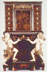woods; drawers of snake wood; figures of painted and gilded oak;