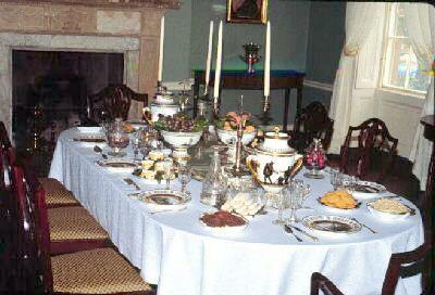 The table has been set for a fancy 19th century dinner party.