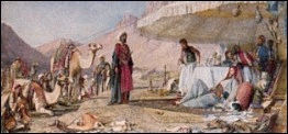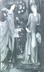 Fair Rosamund and Queen Eleanor, 1861. Mixed media with gold on paper.