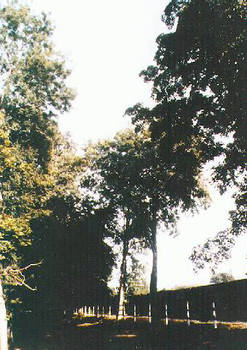A shady bridle path neighboring a large pond made of two adjacent streches of water and adorned with a verdant islet accessible by two little bridges. The pond is safely enclosed and fenced and its water supply comes from a river near the estate.