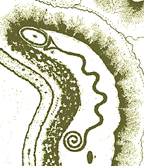 that has leaped away as it ejects an egg, again the oval earthwork. Still other ideas suggest that the oval symbolizes the heart of the reptile or its conventionalized head and eye. Archaeologists now believe that the oval wall represents a snake's