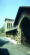 A Tuscan tower houses J.C. Deagan chimes. Former garage is now the museum